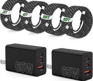 Tired of slow charging and cable clutter across your Galaxy, iPhone, and tablets? This 2-pack 65W 3-port charger (65W+20W+18W) with 4 braided C-to-C cables eliminates chaos while delivering blazing speeds.