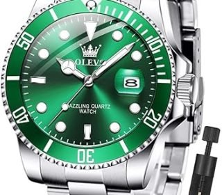Elevate your professional wardrobe with the OLEVS men’s quartz watch featuring a classic 41mm dial, luminous hands, and stylish gold-green accents. This analog business watch combines Roman numeral bezel elegance with practical 30M water resistance and adjustable steel bracelet for comfortable all-day wear.